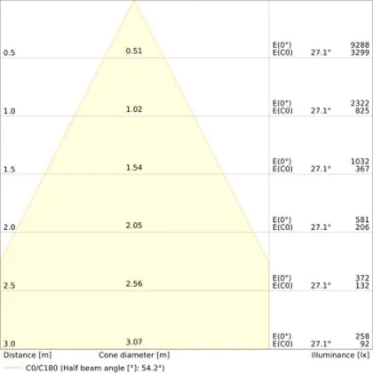 Der Abstrahlwinkel bezeichnet den Winkel, in dem das Licht aus der Lichtquelle ausgestrahlt wird. Er wird in Grad (D) angegeben. Je geringer die Gradzahl des Abstrahlwinkels ist, desto kleiner ist auch der Durchmesser des Lichtkegels, den die Lichtquelle produziert.