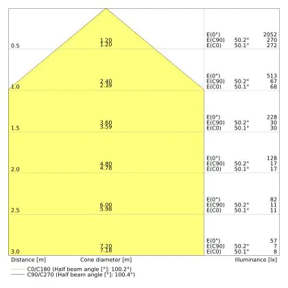 Der Abstrahlwinkel bezeichnet den Winkel, in dem das Licht aus der Lichtquelle ausgestrahlt wird. Er wird in Grad (D) angegeben. Je geringer die Gradzahl des Abstrahlwinkels ist, desto kleiner ist auch der Durchmesser des Lichtkegels, den die Lichtquelle produziert.