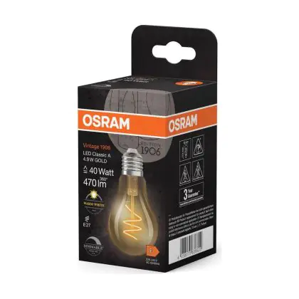 | Herstellername | Vintage 1906 LED CLASSIC A,B,P SLIM FILAMENT DIMMABLE 4.9W 927 Gold E2 | |
