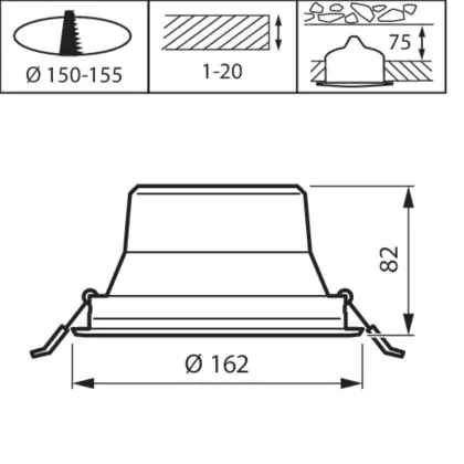 Der Ausschnitt einer Leuchte unterscheidet sich von den Abmessungen der Leuchte selbst und bezeichnet speziell die Grösse der Öffnung in der Decke, die für die sichere Montage der Lichtquelle benötigt wird.