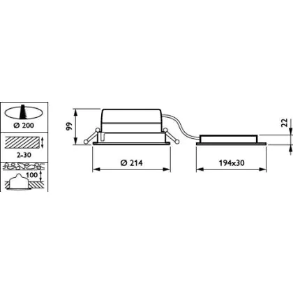 Der Ausschnitt einer Leuchte unterscheidet sich von den Abmessungen der Leuchte selbst und bezeichnet speziell die Grösse der Öffnung in der Decke, die für die sichere Montage der Lichtquelle benötigt wird.