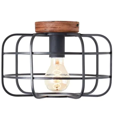 Brilliant Gwen Plafonnier Métal Bois Noir | 300mm - Convient pour 1x E27
