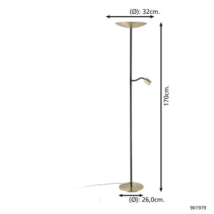 Eglo Lampadaires Salon Conivarino Échantillon Brushed Laiton, Noir 30.5W 3150lm - 827 Blanc Très Chaud | Dimmable