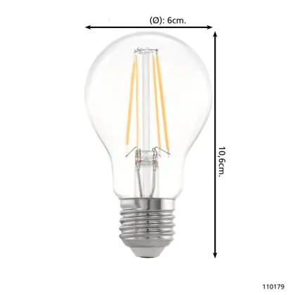 Cette ampoule Eglo LED Poire E27 Filament Claire 7.3W 806lm - 827 | Dimmable - Remplacement 60W avec son efficacité lumineuse de lumen par watt vous permettra de profiter d’un éclairage de qualité. Avec sa durée de vie de 15000 heures, vous n’aurez pas à vous soucier de son remplacement avant quelques années.