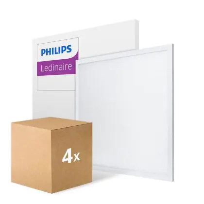 Les panneaux LED sont des solutions éco-énergétiques permettant de remplacer les panneaux classiques équipés de tubes fluorescents. Ce panneau Lot 4x Philips Dalle LED Ledinaire RC065B G5 28W 3400lm - 830-840 CCT | 60x60cm - UGR est conçu pour remplacer une dalle classique de 4x18. La consommation de ce panneau LED est considérablement plus faible qu’un panneau classique, à savoir, seulement 28 watts. Une économie d’énergie sans compromettre la qualité de la lumière. Le flux lumineux est de 3400 lumens. La lumière de ce panneau LED est diffusé à degrés et offre un bon rendu des couleurs. La durée de vie moyenne de ce panneau LED est de 50000 heures.