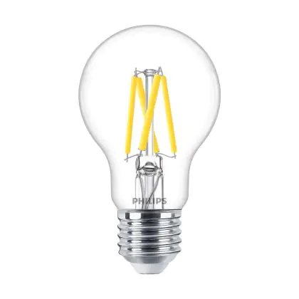 Cette ampoule Philips Master LED E27 Poire Filament Claire 3.4W 470lm - 922-927 Dim To Warm | Meilleur Rendu De Couleur - Dimmable - Remplacement 40W avec son efficacité lumineuse de lumen par watt vous permettra de profiter d’un éclairage de qualité. Avec sa durée de vie de 25000 heures, vous n’aurez pas à vous soucier de son remplacement avant quelques années.